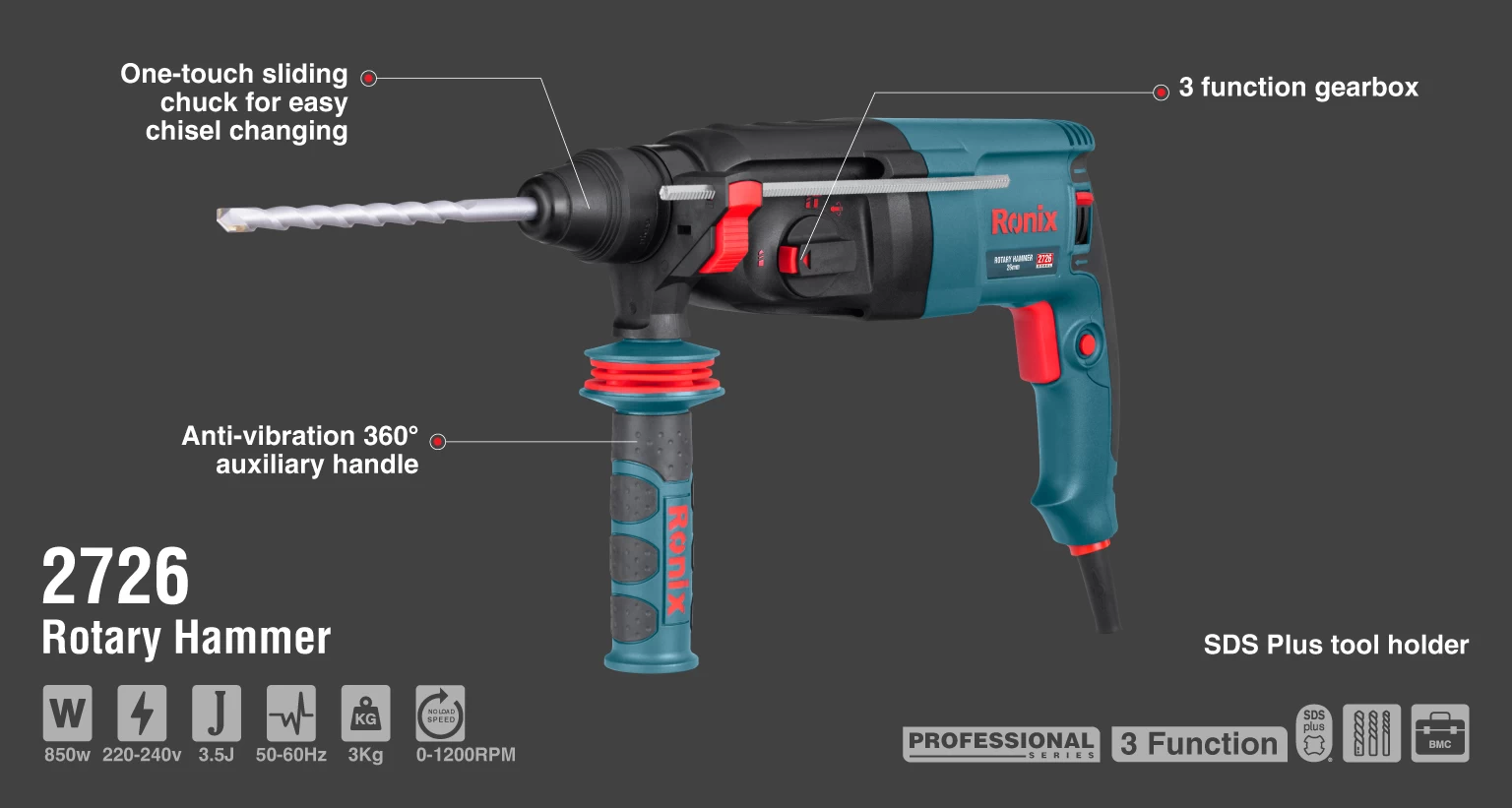 در ادامه با مشخصات فنی بتنکن 26 میلیمتری 850 وات رونیکس مدل 2726، بیشتر آشنا شوید.