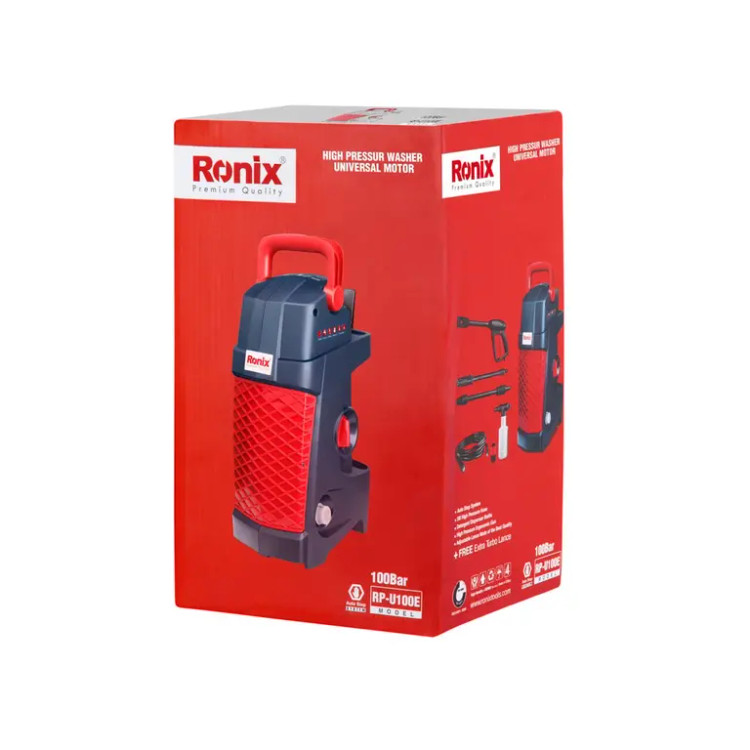 کارواش RP-U100E رونیکس مجهز به یک موتور قدرتمند 1400 وات است که آب را با فشار 100 بار بر روی سطح مورد نظر میپاشد. برخورداری از موتور یونیورسال در ساختار این دستگاه نسبت به موتورهای دینامی باعث وزن سبکتر آن شده است تا حمل و جابهجایی این محصول آسانتر شود.